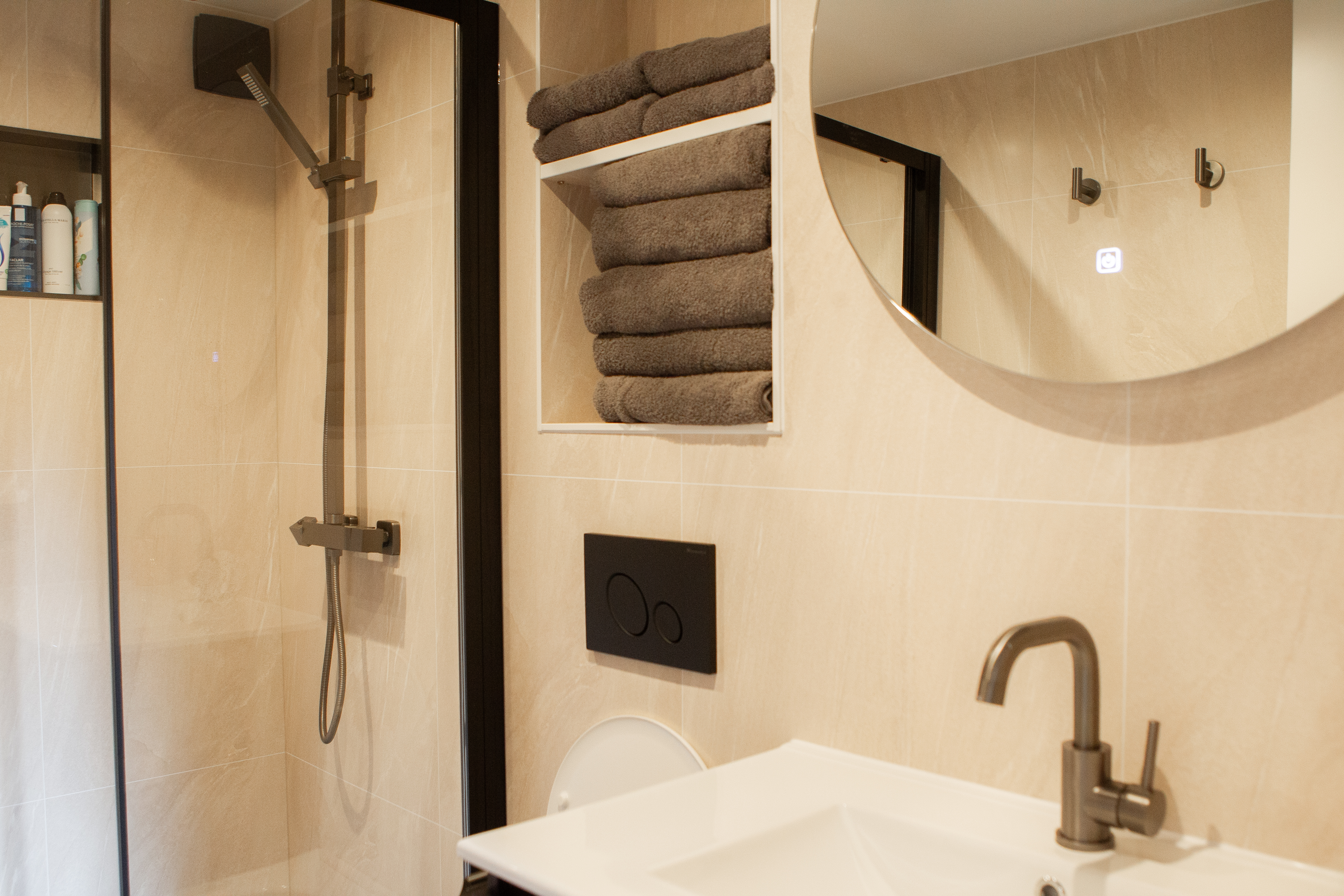 In deze prachtige tuin hebben we een modern en comfortabel bijgebouw geplaatst dat de kinderen van de bewoners een volwaardige woonruimte biedt. Door het woningtekort is het lastig om een eigen plek te vinden, maar met dit stijlvolle chalet perfect passend in de omgeving hebben zij nu hun eigen thuis, vlak bij hun ouders en met volop privacy.